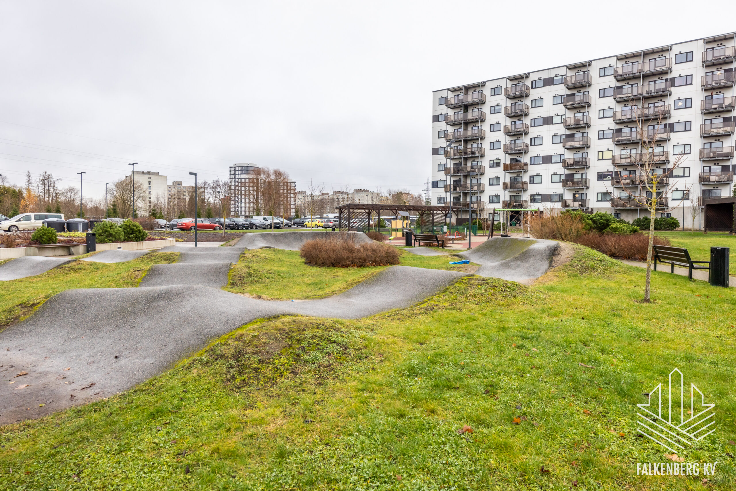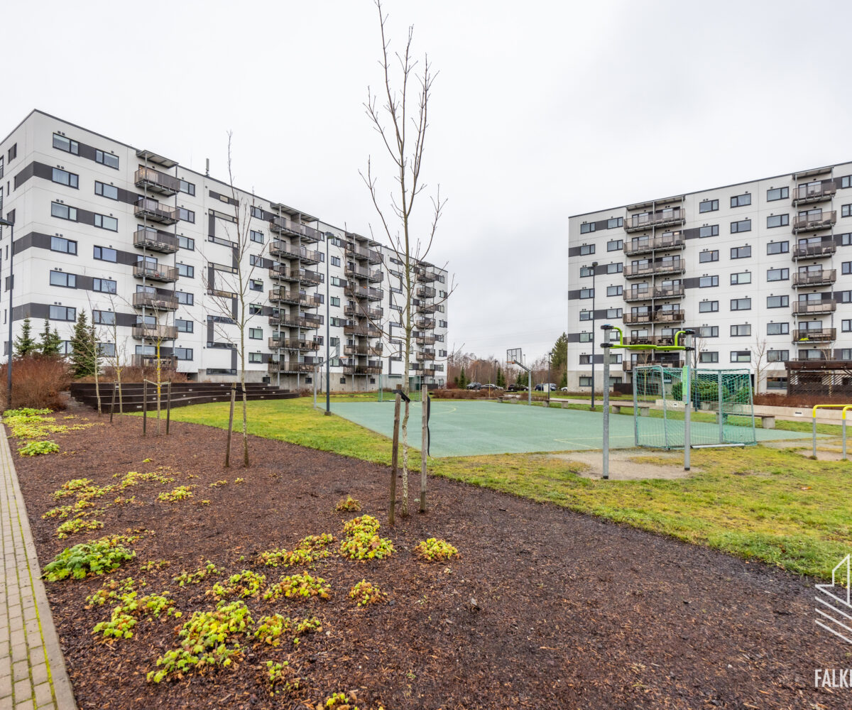 Elamu territoorium koosneb kolmest korruselamust, mille sissesõidul on puldist avanev tõkkepuu. Korteri juurde kuulub ka kindel parkimiskoht ja panipaik. Elamu hoolitsetud territooriumil on leidnud oma koha laste mänguväljakud ning stiilne rularamp.