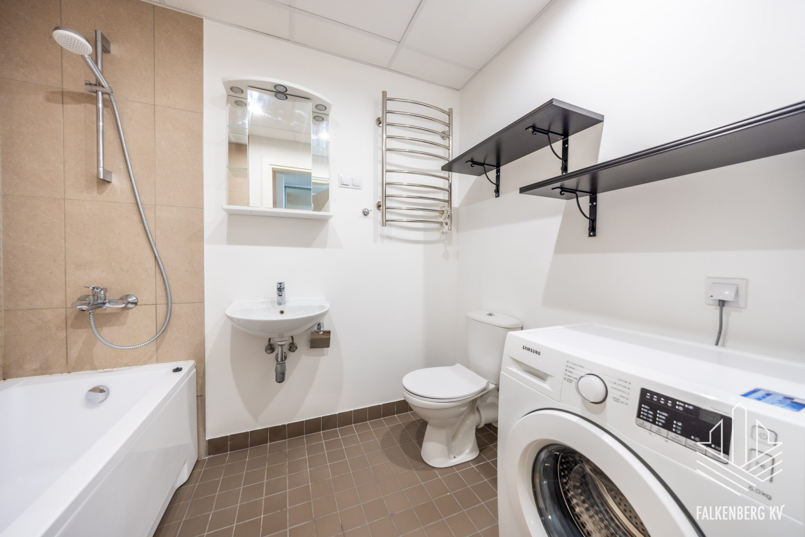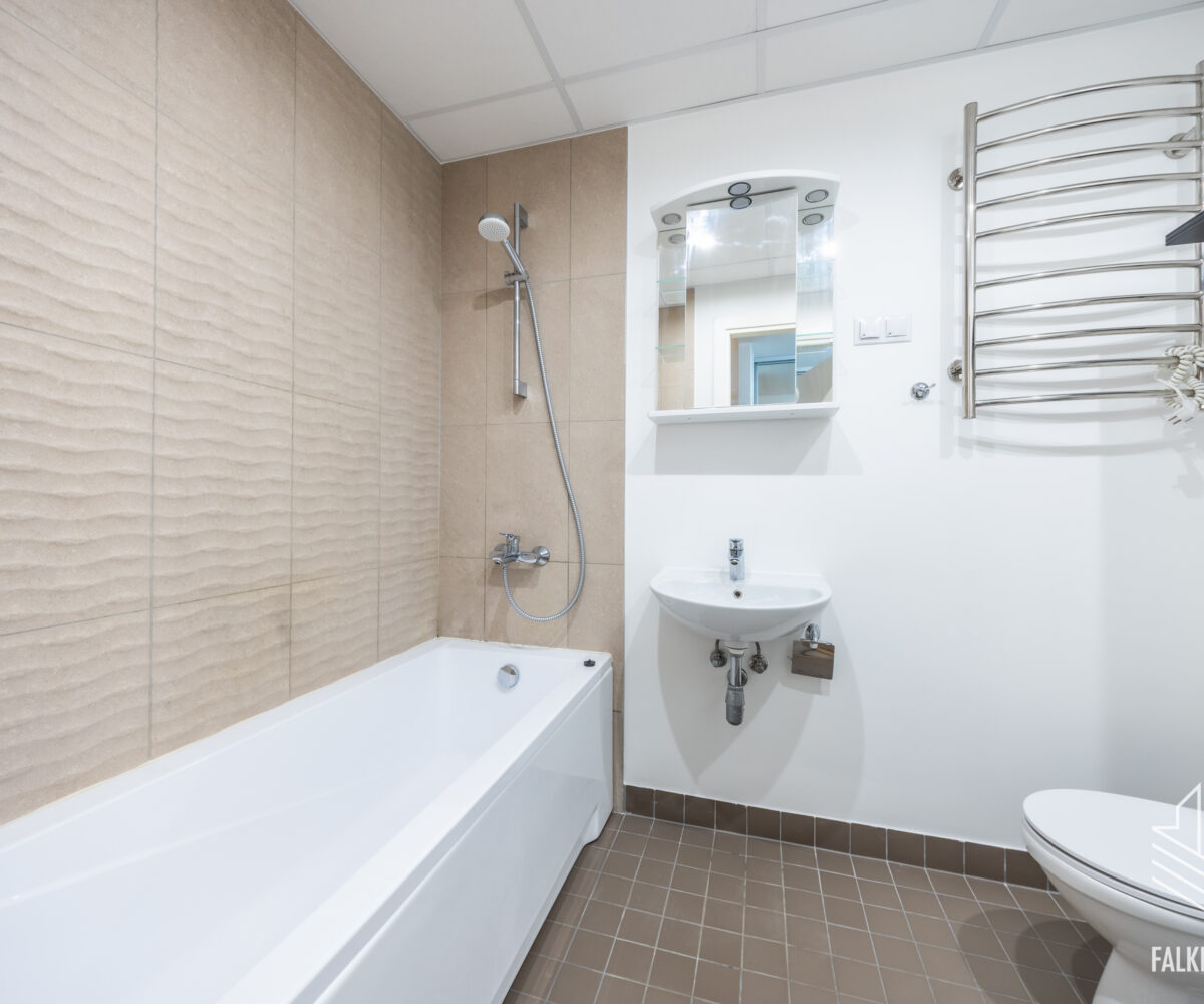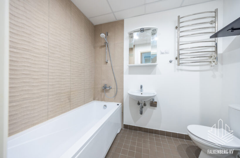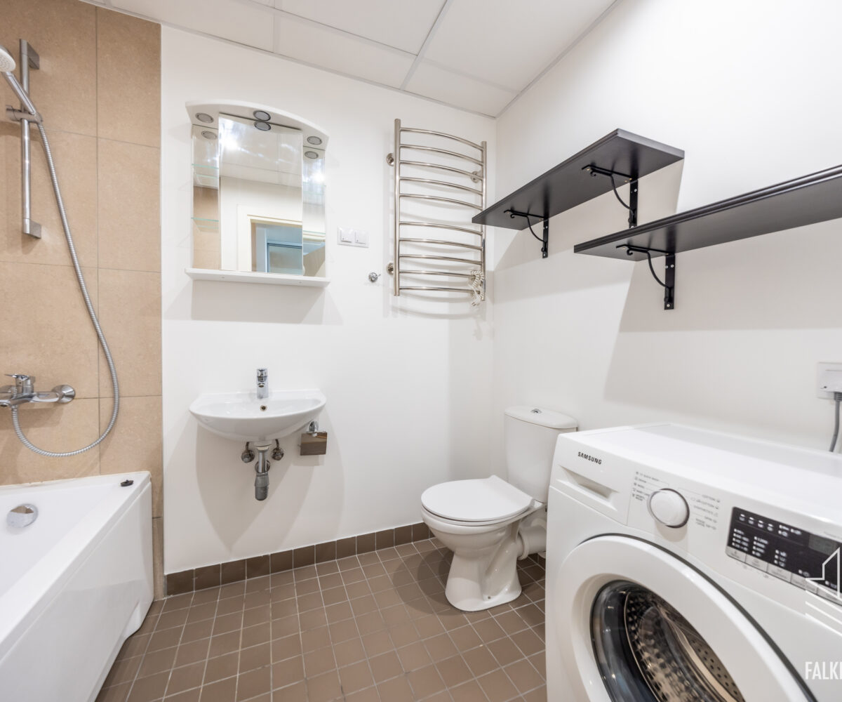 Piisavalt suures ja plaaditud pindadega vannitoas on põrandaküte, olemas on ka pesumasin. Kõrvalkulud on keskmiselt 60-165 eurot kuus pluss tasu kasutatud elektri eest.
