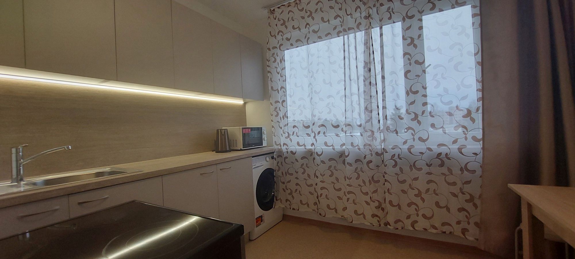 Korteri pärliks on suur klaasitud rõdu, mis on viimistletud puitlaudisega, rõdu põrandapind on soojustatud. Maitsekalt kujundatud köök on korralikult möbleeritud, olemas on kogu vajalik köögitehnika, põrandakatteks on valitud kahhelplaadi imitatsiooniga niiskuskindel PVC-kate.