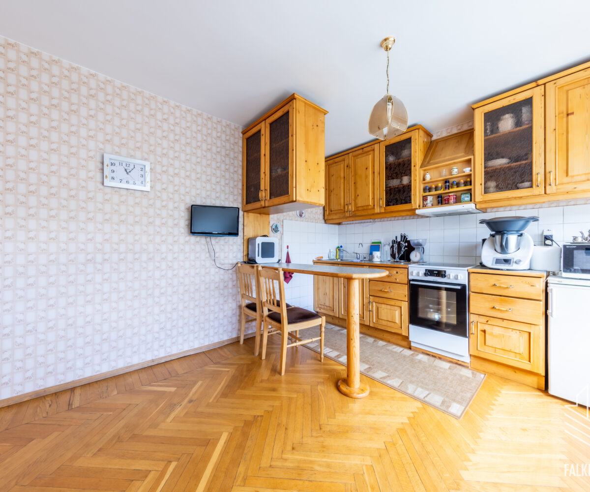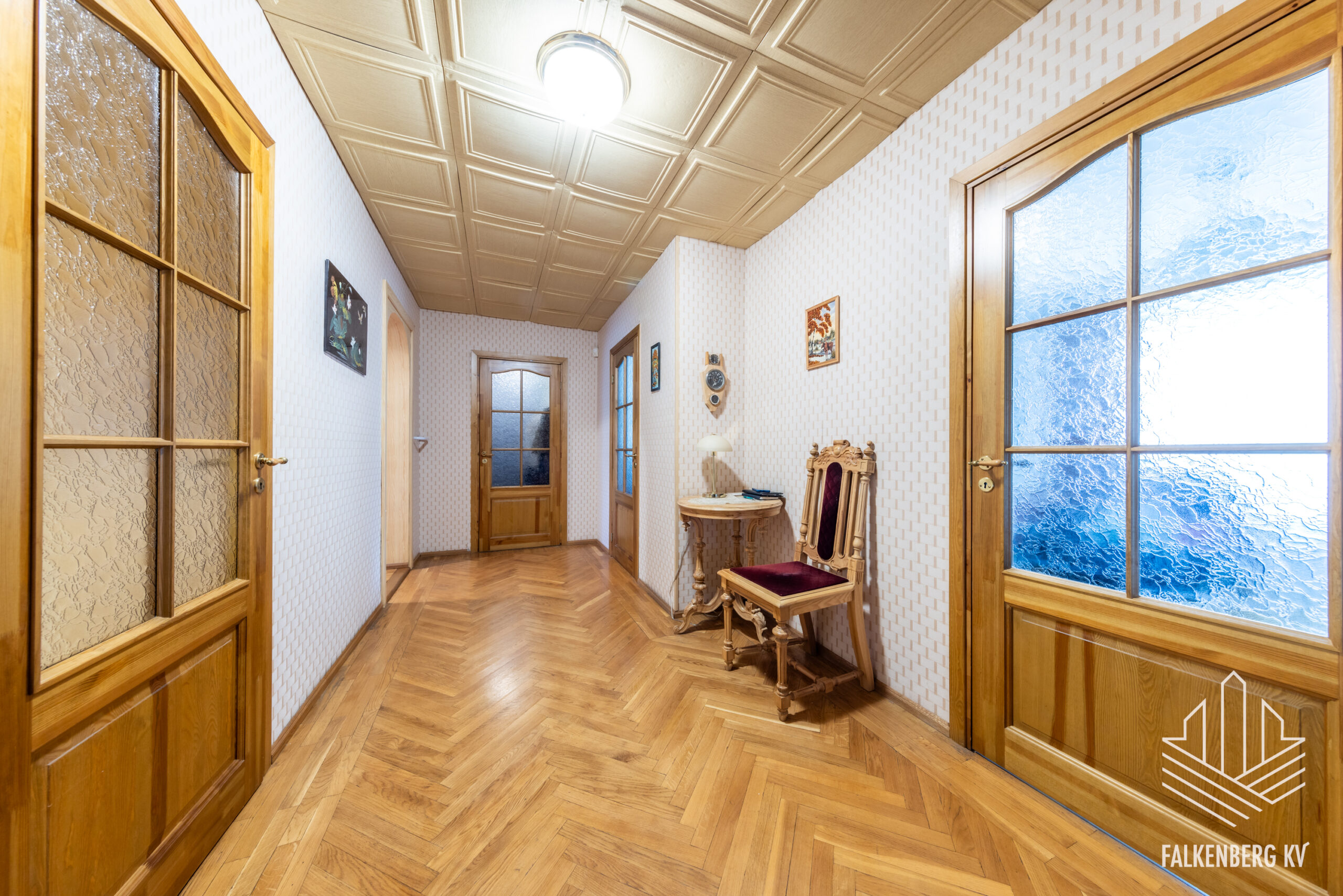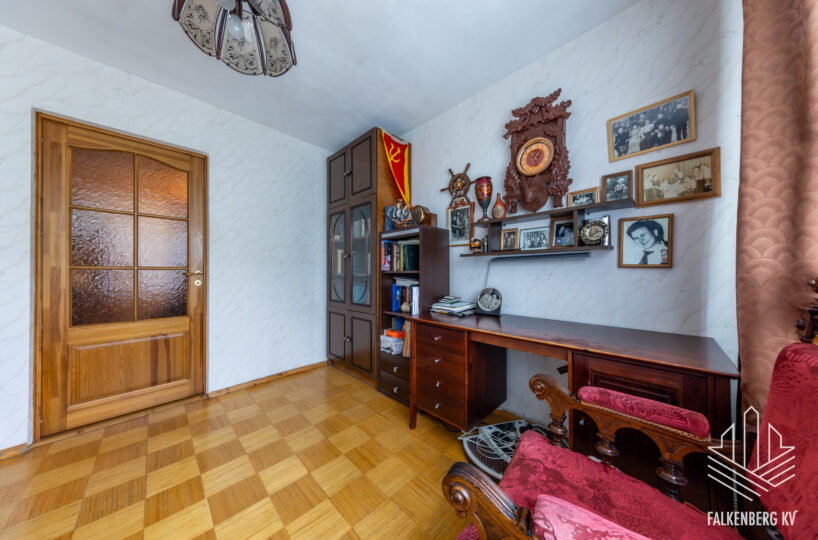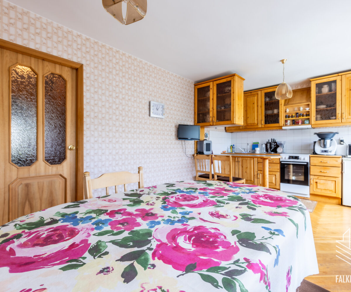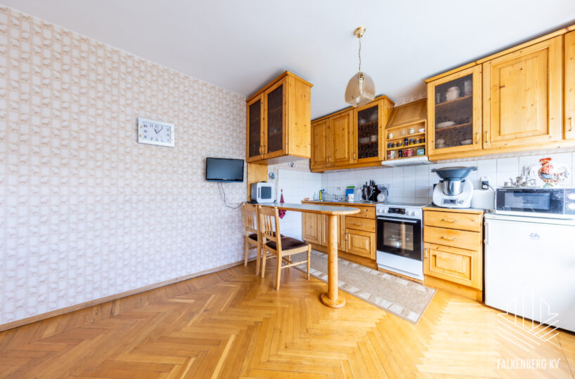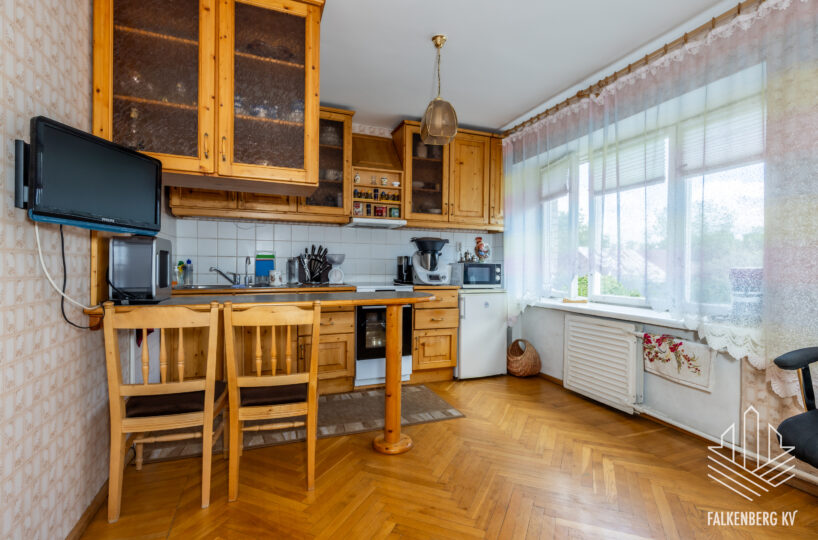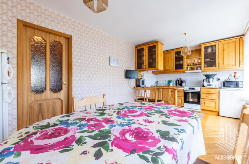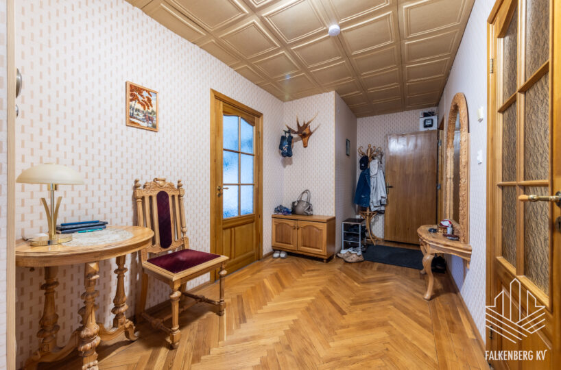 Valguseküllane korter on heas seisukorras, tubade põrandaid katab enamjaolt kilpparkett, esikus ja köögis täispuidust tamme liistparkett. Heledates mänglevates toonides seinte pinnad on valdavalt tapetseeritud. Korteri siseuksed on täispuidust.