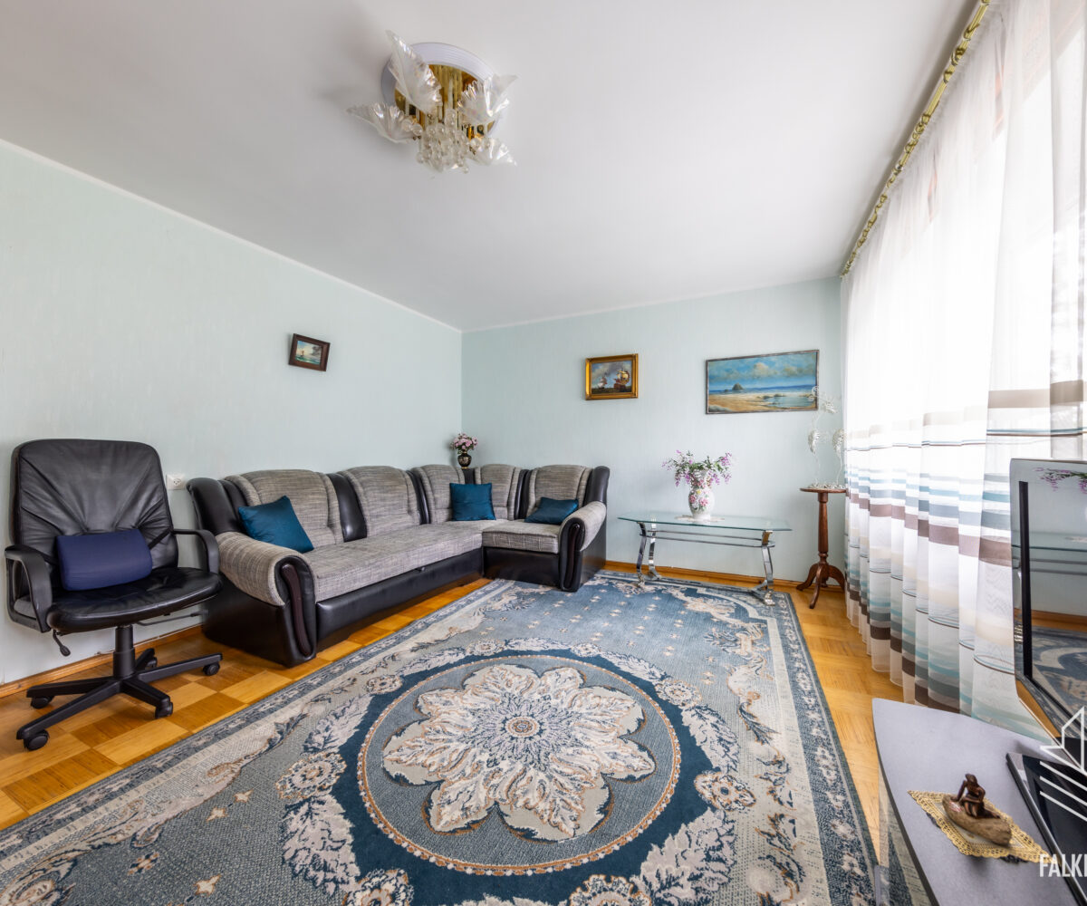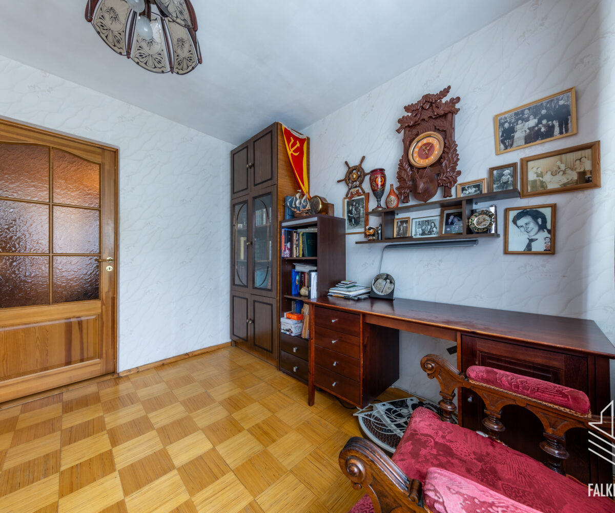 Квартира состоит из большой прихожей с большим гардеробом, двух спален и прекрасной гостиной с двумя окнами, просторной кухни и раздельных туалета и ванной комнаты.