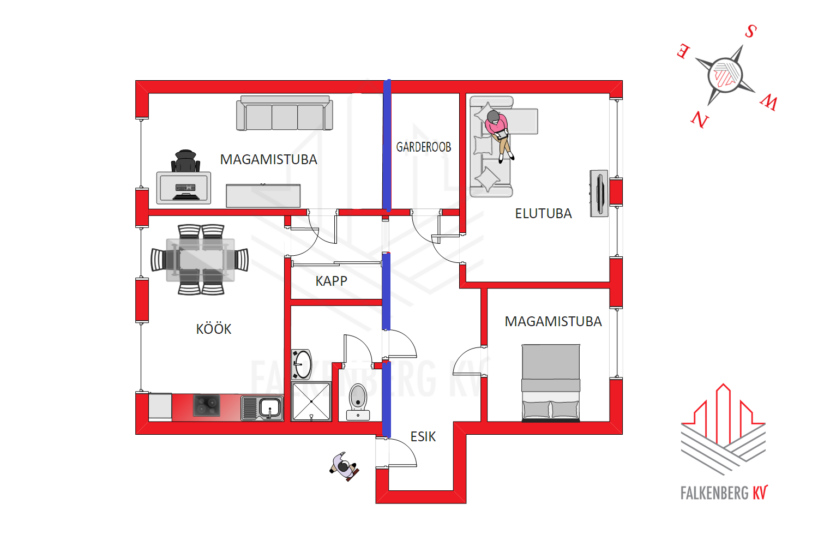 Korteri koosseisu kuuluvad suur esik koos suure WALK/IN garderoobiga, kaks magamistuba ja suurepärane kahe aknapinnaga elutuba, avar köök ning eraldi asetsevad WC ja vannituba.