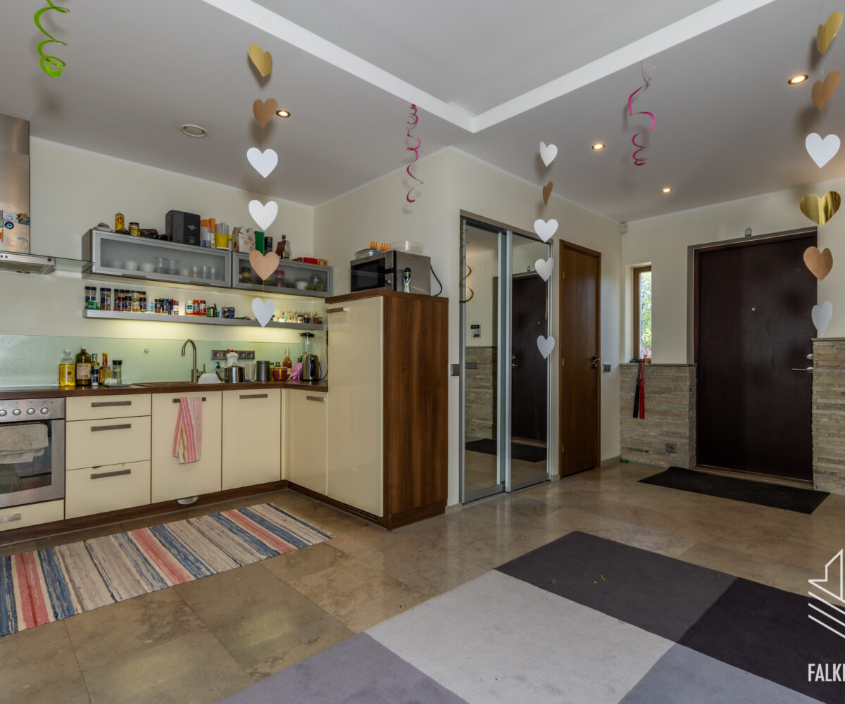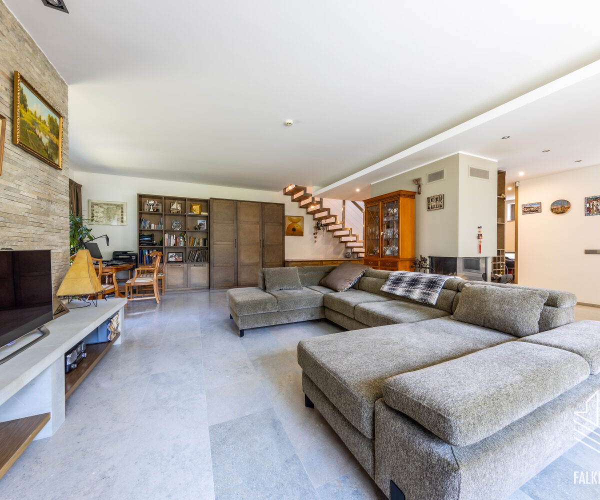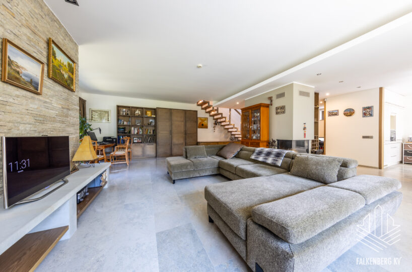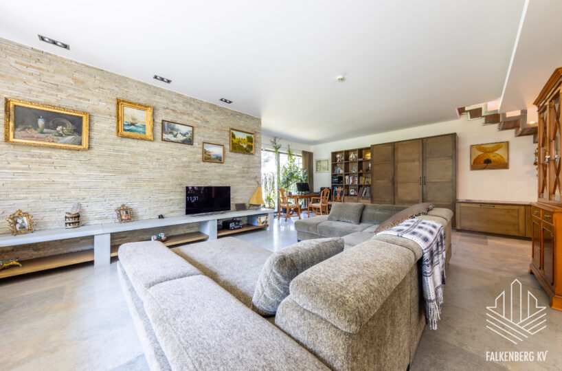 Ainulaadse eramu üldpind on 393,1 m2 (sh terrassid 90 m2, rõdu 27 m2), köetavat pinda on kokku 263,4 m2. Avatud plaanilahendus, suurte akendega projekt ja kõrged laed (osaliselt kuni 3,9 m2), mis tagavad meeldiva valgusküllasuse ja avarustunde. Siseviimistluses on kasutatud heledaid pastelseid värvitoone ning kvaliteetseid materjale, põrandakatteks I korrusel laiub marmor, teisel korrusel loodussõbralik saarepuidust parkett, siseuksed Alpi spoon.