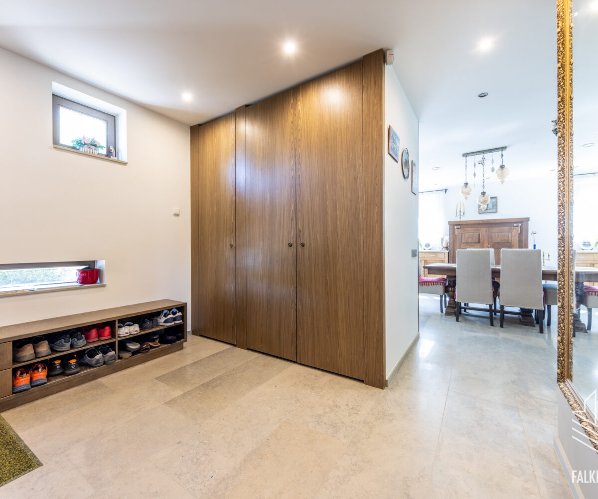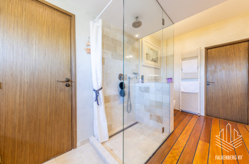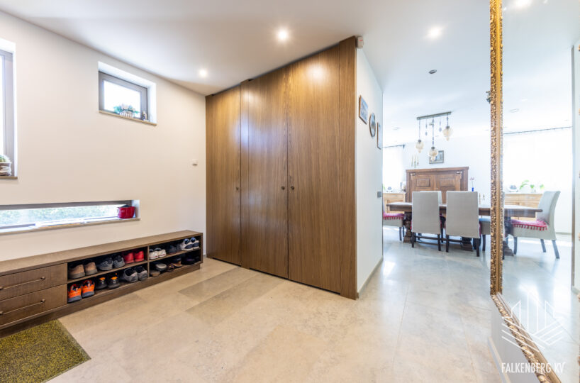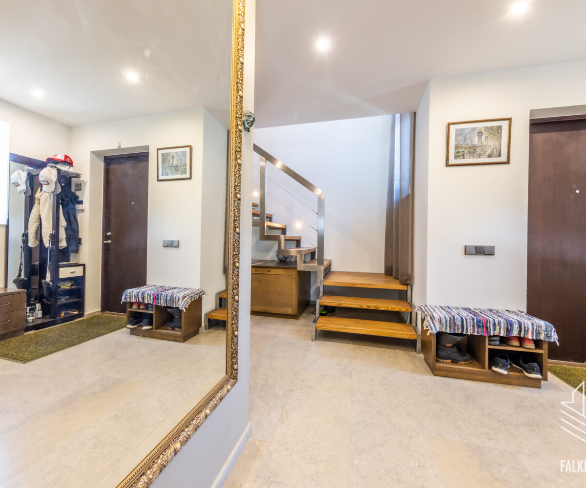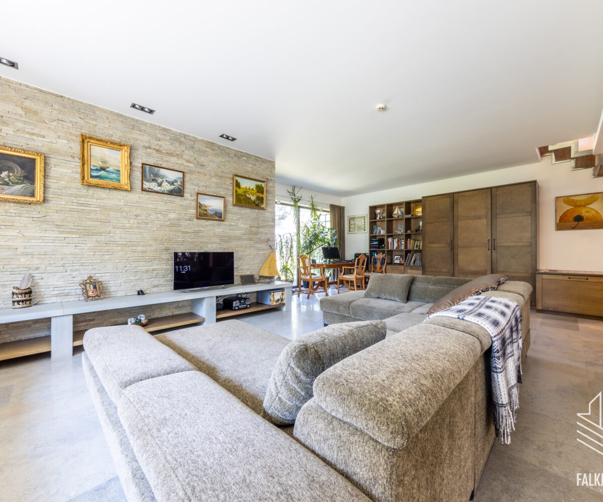 Ainulaadse eramu üldpind on 393,1 m2 (sh terrassid 90 m2, rõdu 27 m2), köetavat pinda on kokku 263,4 m2. Avatud plaanilahendus, suurte akendega projekt ja kõrged laed (osaliselt kuni 3,9 m2), mis tagavad meeldiva valgusküllasuse ja avarustunde. Siseviimistluses on kasutatud heledaid pastelseid värvitoone ning kvaliteetseid materjale, põrandakatteks I korrusel laiub marmor, teisel korrusel loodussõbralik saarepuidust parkett, siseuksed Alpi spoon.