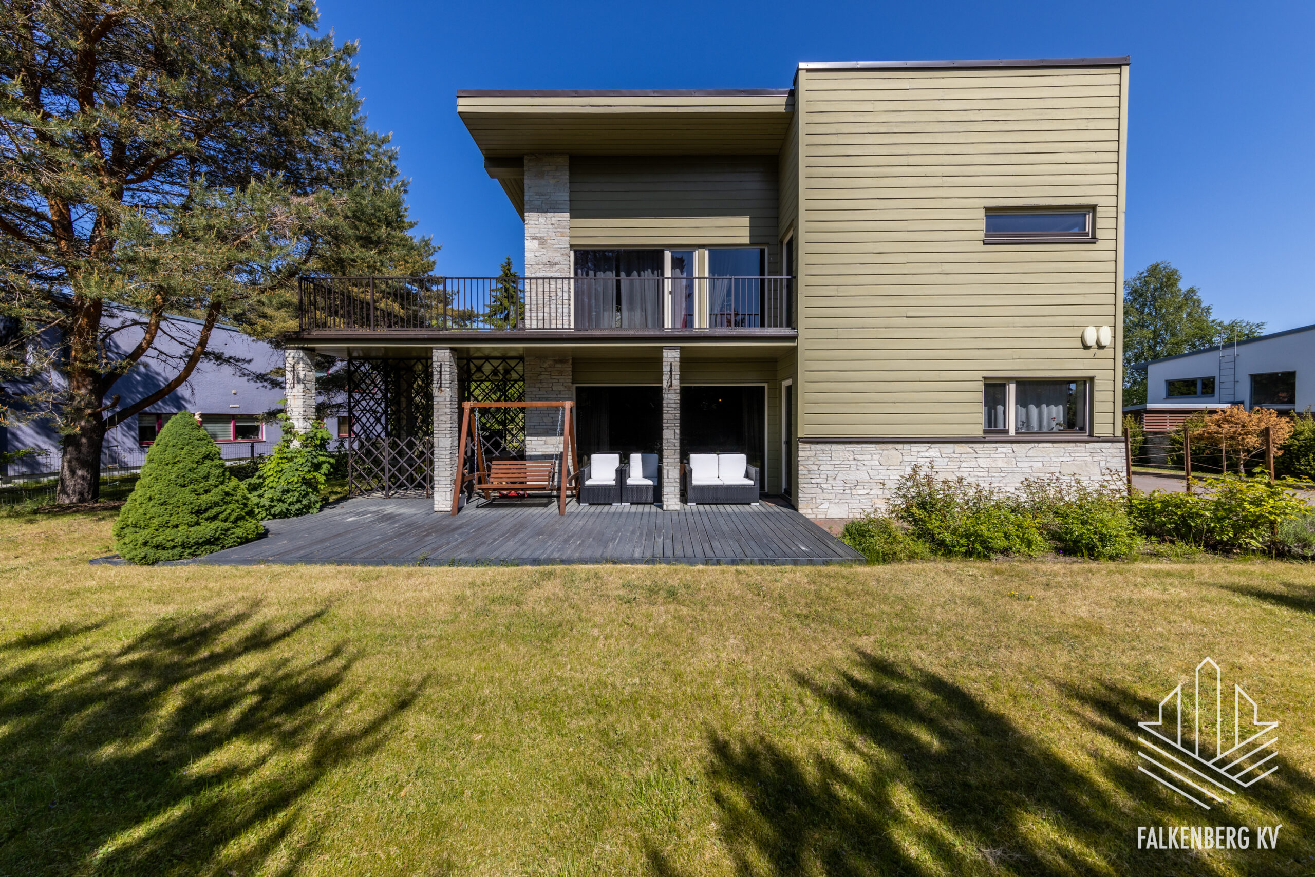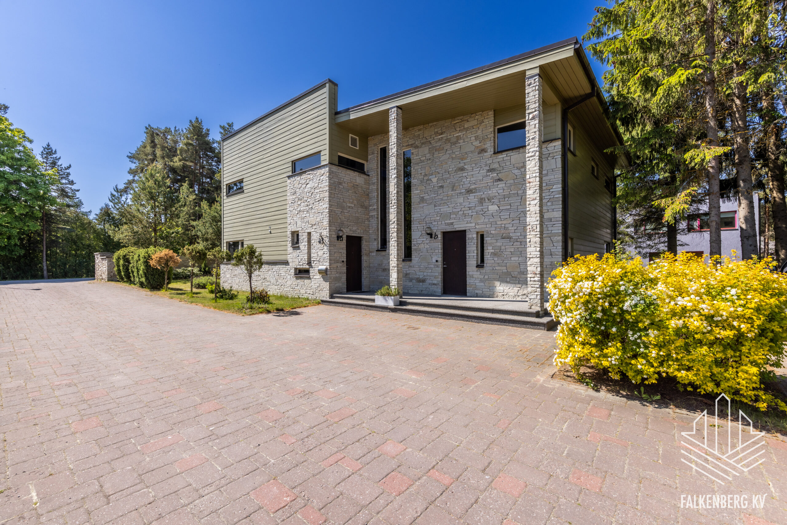 Kauni kinnistu suurus on kokku 1084 m2, kinnistu on korraliku paekivist aiaga ümbritsetud, millele lisandub 300m2 sissesõidutee kasutust. Hooldatud kinnistul on haljastus rajatud vastavalt haljastusprojektile. Kinnistul kokku 6 parkimiskohta, millest 2 on varjualusega kaetud. Elamule on väljastatud kasutusluba.