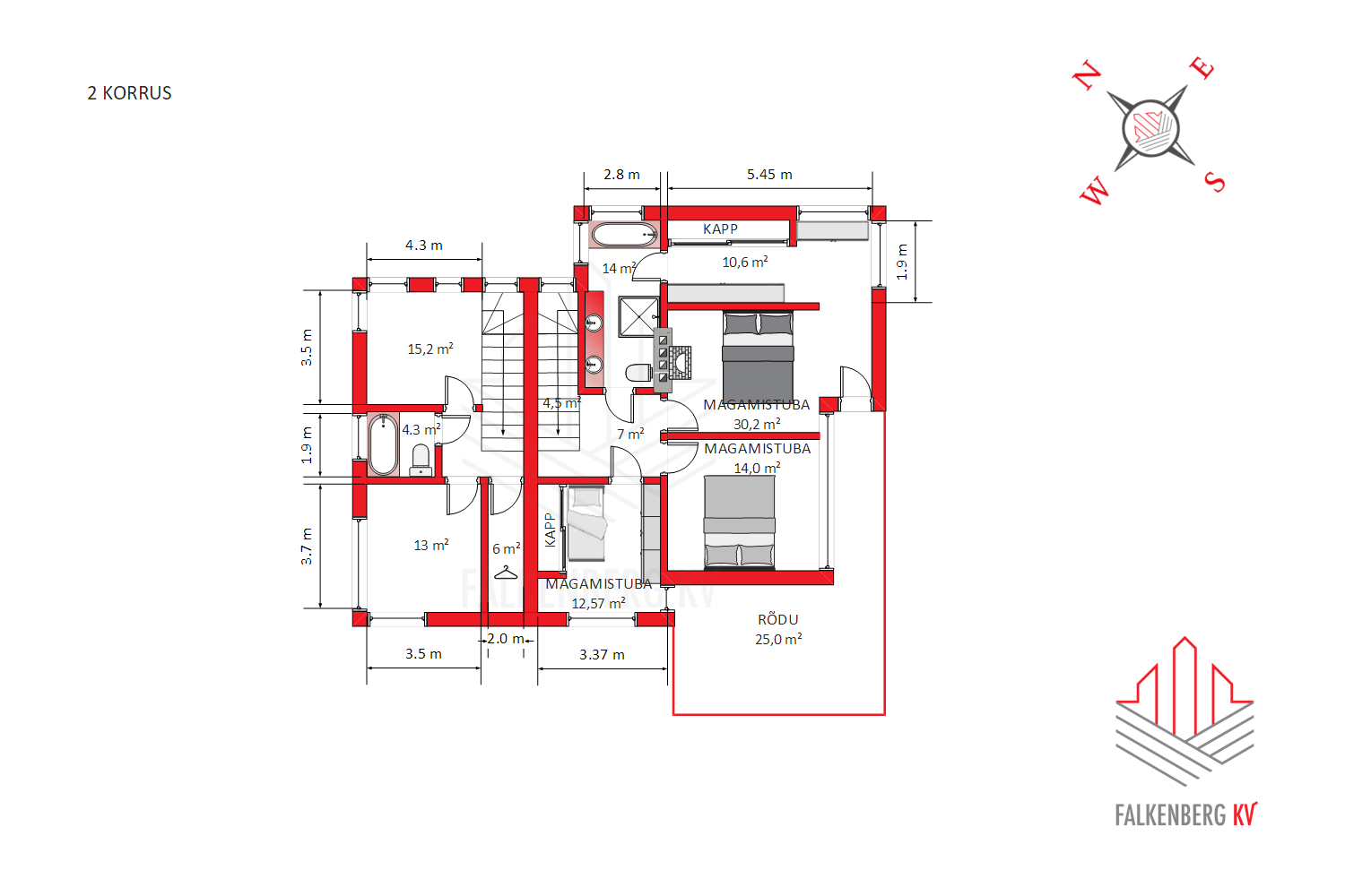 II-korrusel asuvad kaks eraldiseisvat magamistuba, WC/vannituba ja suur garderoob.